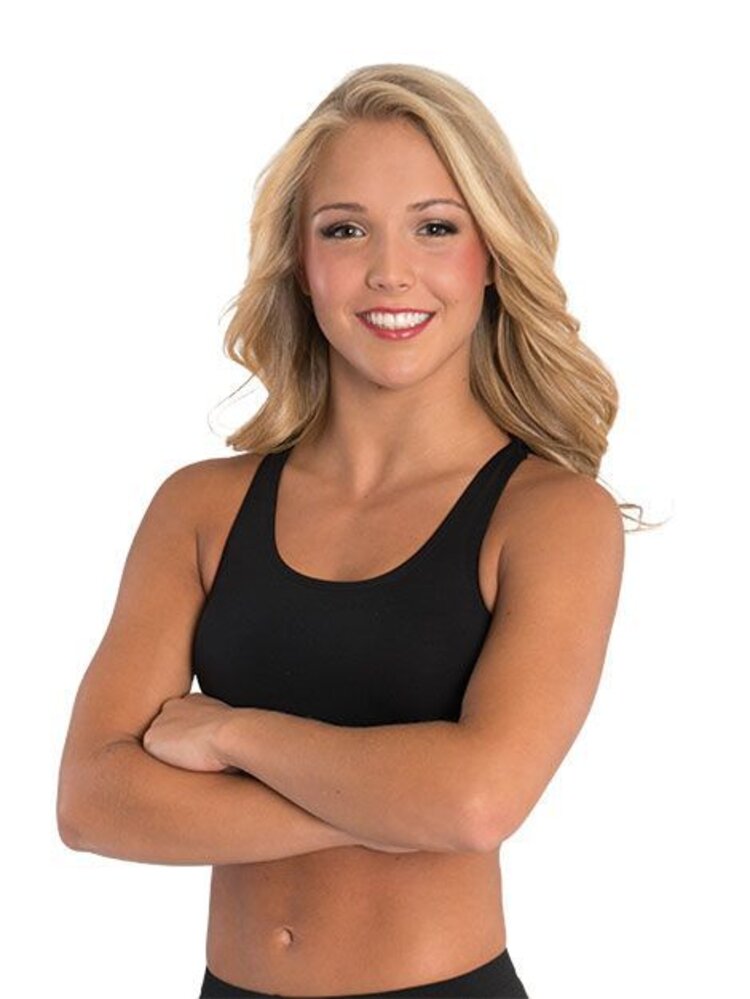 • Scoop neck racerback cheerleading crop top in performance moisture-wicking drytech fabric.
